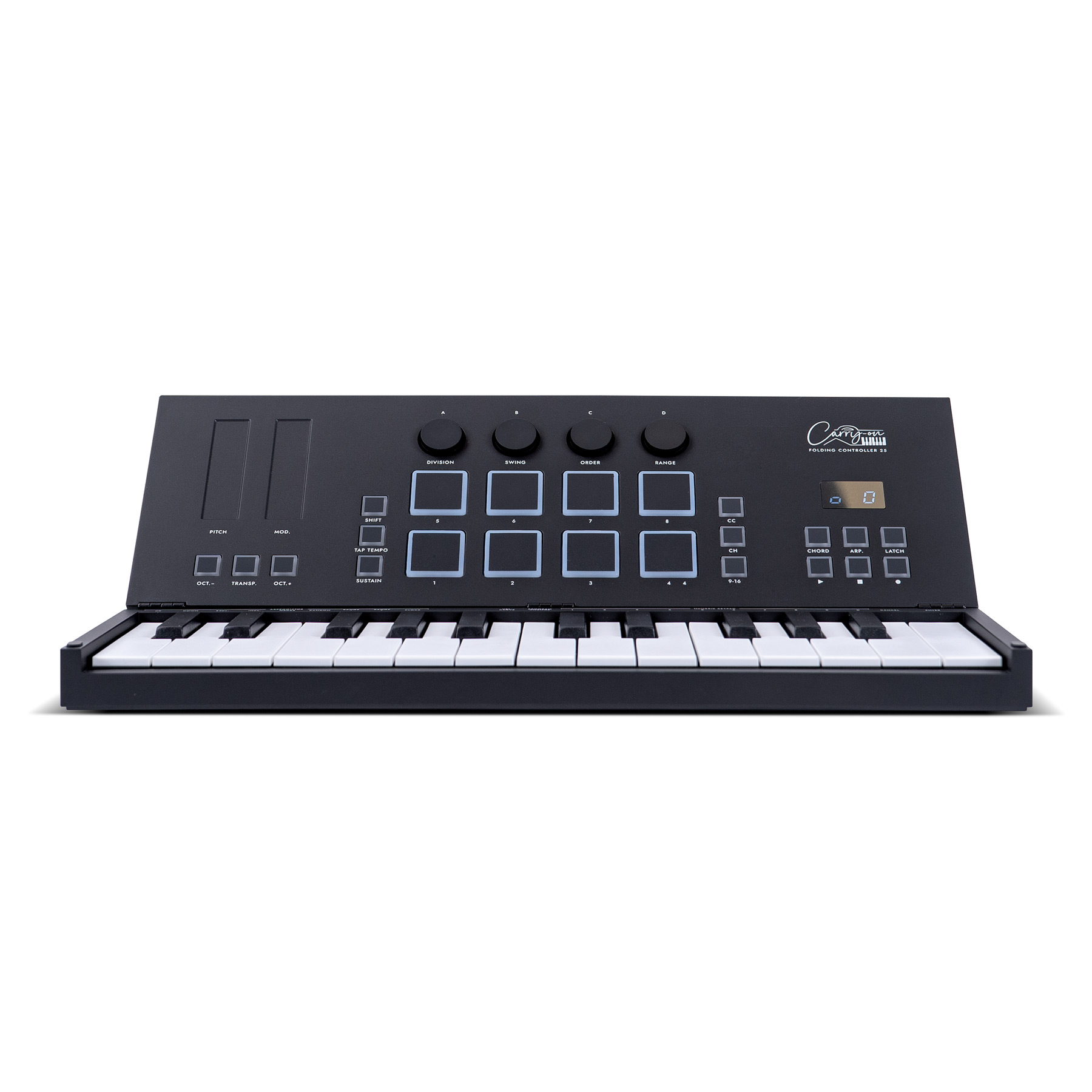 Con sólo 39 cm de largo cuando está plegado, el controlador plegable Carry-on 25 es un controlador MIDI potente y portátil. Gracias a su diseño exclusivo y a sus teclas de ancho completo, sensibles a la velocidad, el controlador Carry-on es la solución perfecta tanto para estudiantes o principiantes como para profesionales.