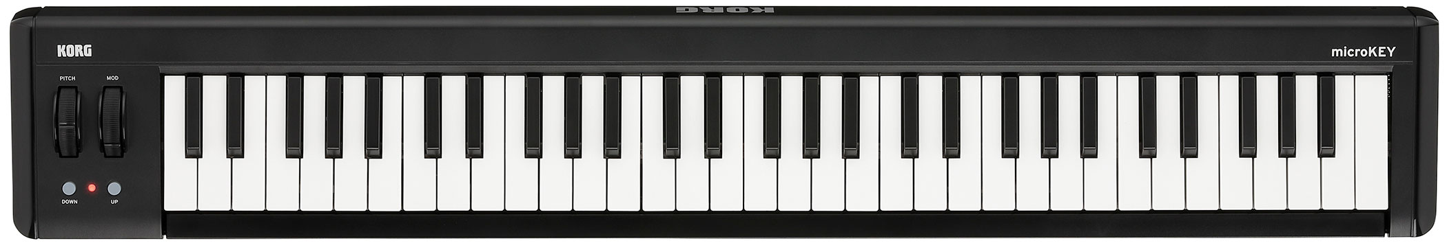 TECLADO MAESTRO Teclado controlador MIDI Korg microKEY2-61. Mini-teclado Natural Touch de 61 teclas. Controladores:Rueda de tono, rueda de Modulación, botones de Octava. Cambio de Octava -3 – +3. Conexiones jack deconmutador asignable, USB Type B (x1). Alimentación: Dos pilas o baterías NO incluidas: Cable USB, código KORG Software Bundle. Requisitos de funcionamiento: OS X10.8 Mountain Lion o posterior instalado, iOS8 o posterior instalado, Windows: Microsoft Windows 7 SP1 o posterior (32-bit / 64-bit).