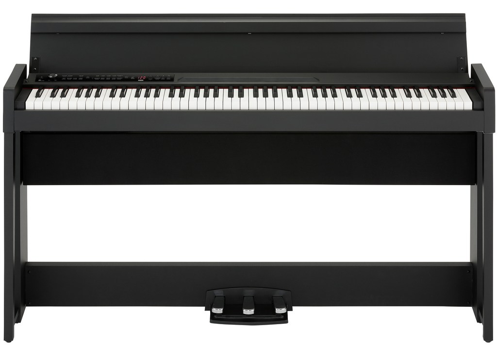 PIANO DIGITAL Nuevo piano digital premium Korg. Teclado RH3, 30 sonidos, grabador de 2 pistas, 50 canciones, función de ayuda al aprendizaje, 3 pedales con función medio pedal, soporte de diseño exclusivo integrado, sistema de amplificación de 50W, MIDI, 2 salidas de auriculares, fabricado en Japón. Elementos incluidos: AC adaptador, soporte dedicado.Características destacadas88 teclas contrapesadas con acción martillo (RH3)30 sonidosPolifonía de 120 notas50 canciones de demostraciónEfectos: 'Brilliance', 'Reverb' y 'Chorus'MetrónomoGrabador de 2 pistas (máx. 14.000 notas)3 pedalesConexiones: Salida de línea, MIDI (entrada, salida), 2 de auriculares, PedalSistema de 2 altavoces de 25WDimensiones: 1346 x 347 x 770mm (ancho x profundo x alto)Peso (con soporte): 35kgColor: Negro