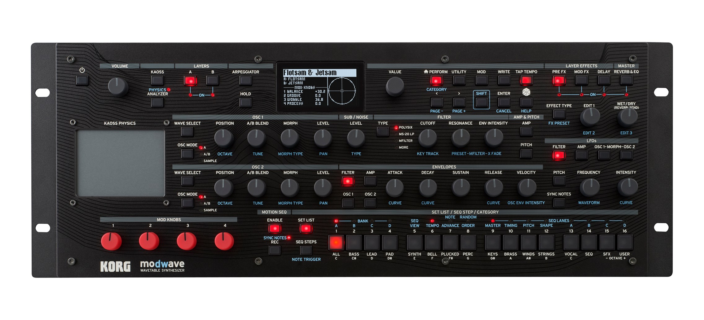 MODULO DE SONIDOS O SINTETIZADOR ‘Presentamos el modwave module: todas las funciones del modwave mkII en un paquete compacto de 19» para montaje en sobremesa/rack. modwave se basa en el legado del DW-8000 de KORG, y lo transforma en un moderno y monstruoso sintetizador, con osciladores de tabla de ondas increíblemente profundos, magníficos filtros, modulación tremendamente flexible, polifonía sin igual, secuenciación de patrones completa, y un control directo inmediatamente satisfactorio para ofrecer sonidos y frases únicos, potentes y fácilmente personalizables.