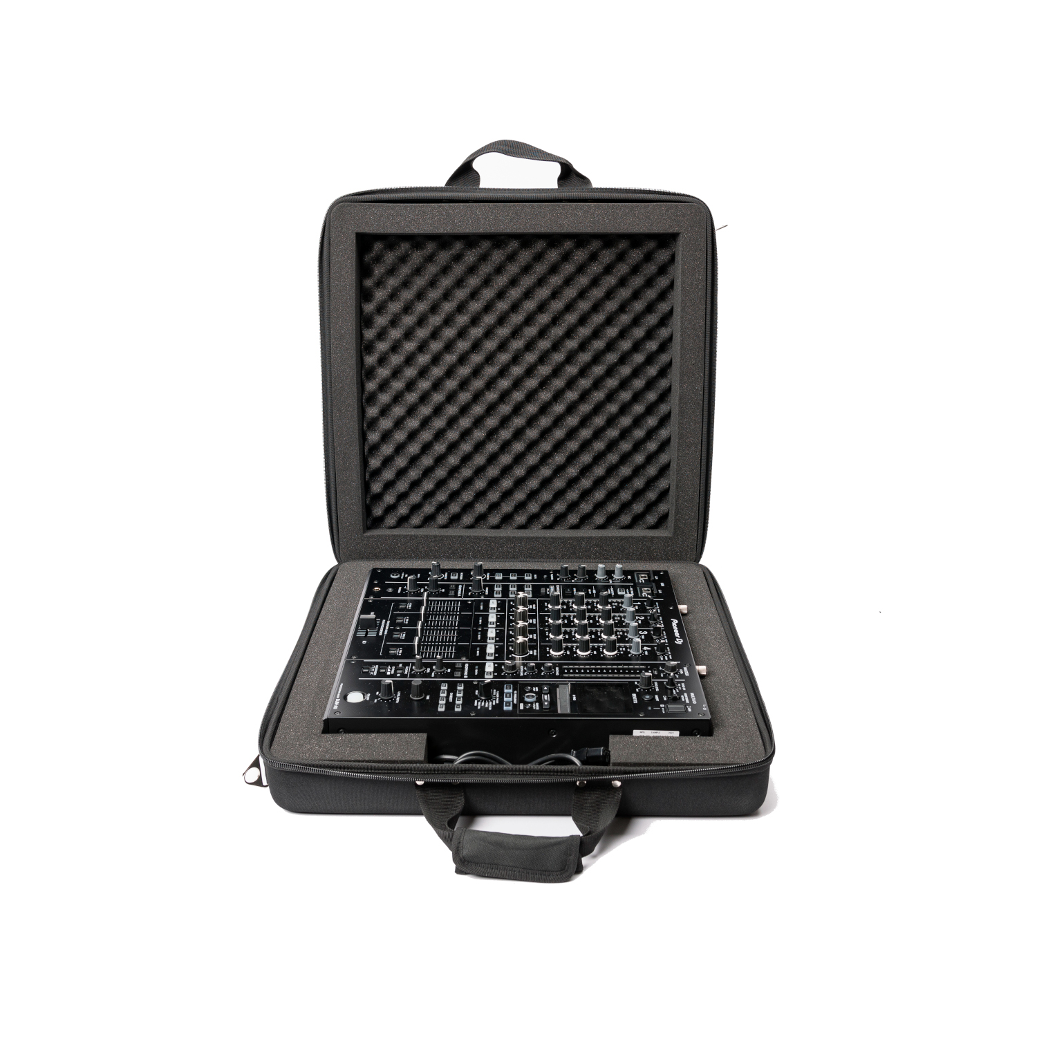 Estuche de transporte para Pioneer DJM-V10 / DJM-A9. Fabricada con espuma EVA moldeada Durashock rígida de 8 mm de grosor y revestimiento exterior de poliéster impermeable. Cremallera resistente. Incluye espuma de huevo extraíble e interior totalmente acolchado. Cómodas asas de transporte reforzadas con remaches y correa para el hombro (con hebillas metálicas). Compatible con la funda Decksaver®. Medidas exteriores: 57 x 56 x 15 cm. Medidas interiores DJM-V10: 46 x 44 x 7 cm / DJM-A9: 43 x 41 x 7 cm (ranura para equipo). Peso: 2,3 kg